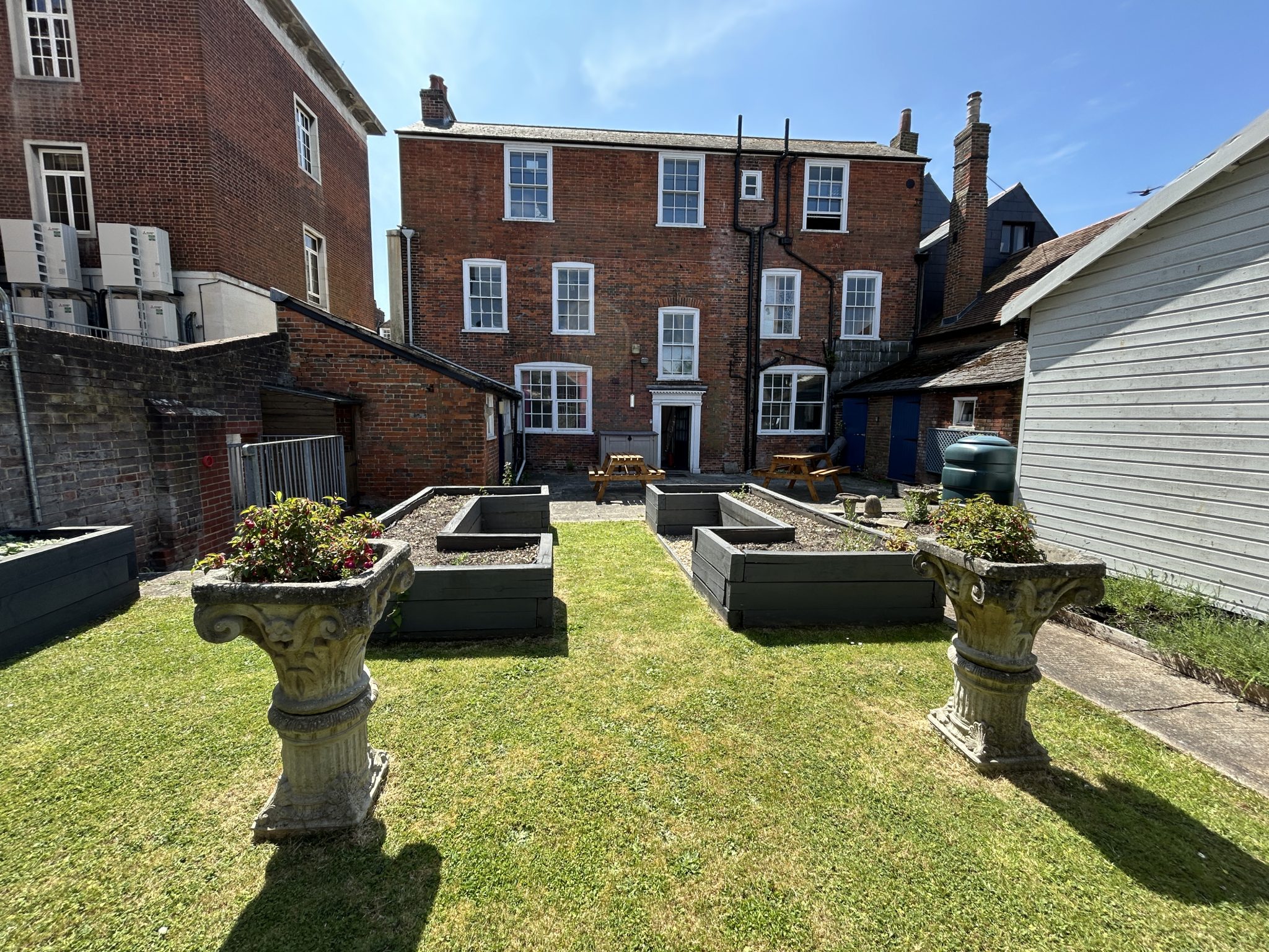 Consisting of three office spaces, a meeting room, kitchen with informal meeting space, accessible WC and enclosed garden with seating.